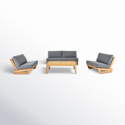 Decksplore L-Shaped Sofa with Dining Table Aluminum Patio Sectional with Coffee Table