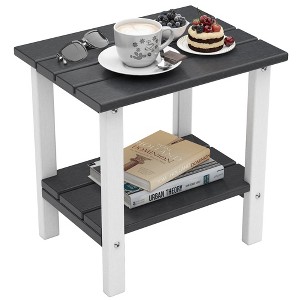 Add some extra style to your patio with the stylish Adirondack-style side table. This attractive side table is made with HDPE, making it durable and having a weather and UV-resistant treatment, protecting it from the outdoor elements and preventing fading, keeping that beautiful color year round.