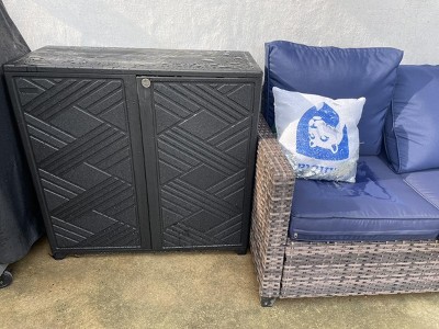 Decksplore Black Outdoor Storage Shed Weather Resistance, Horizontal Outdoor Storage Box Cabinet Waterproof for Garden, Patios, Backyards