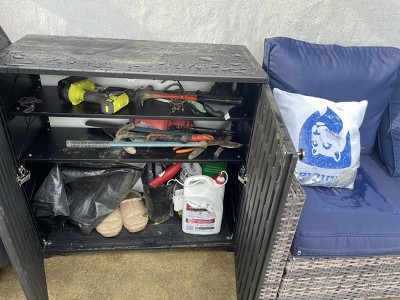 I picked this cabinet cause it has fashion design and it fits perfectly next to my patio chair. I can put my small tools in there. That’s what I wanted.