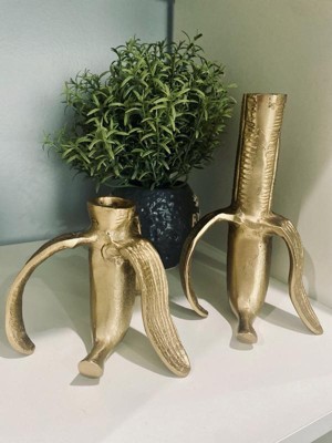 Decorative Banana Candle Holders - Metal Taper Candlestick Holder for Centerpieces, Living Room, Shelf, Office, or Home Decor - Set of 2, 7", 5", Gold