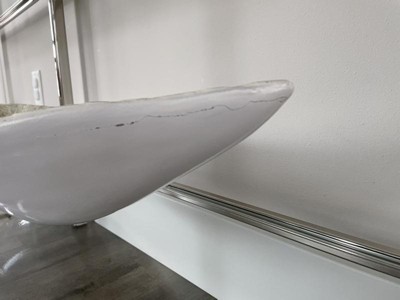 - •This one-of-a-kind white display tray showcases an irregular boat shape with leaf-like Mother of Pearl inlay patterns and a plain white outer base molded from pure polystone