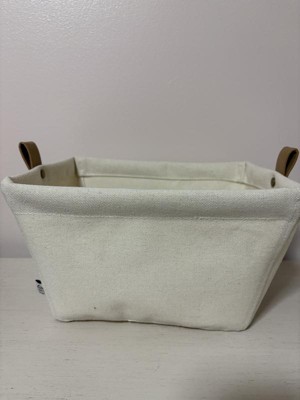 Decorative Canvas Storage Bin with Faux Leather Strap Handles Cream/Tan - Hearth & Hand™ with Magnolia
