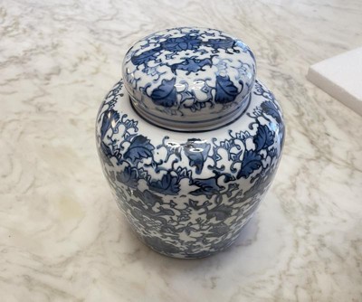 Storied Home Decorative Ceramic Ginger Jar 6.5" Blue/White - Traditional Style with Lid, Online-Unique