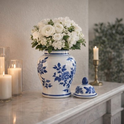 Storied Home Decorative Ceramic Ginger Jar with Lid, Blue