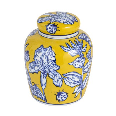 - Decorate the home with this blue ceramic ginger jar with removable lid that features a classic shape and pattern