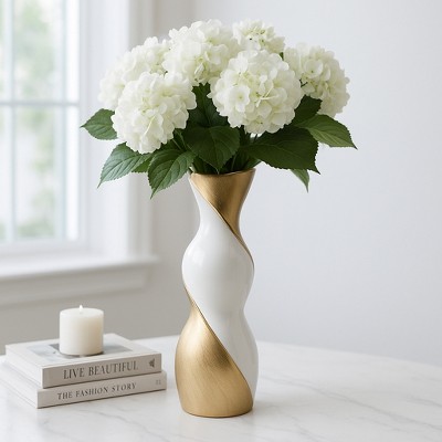 Twisted Ceramic Vase to Elevate Home Decor - Perfect Flower Vase for Living Room, Office, Bedroom, Table Accent and House Decor - 24" White & Gold