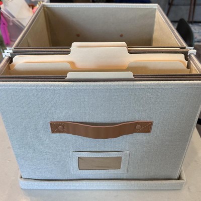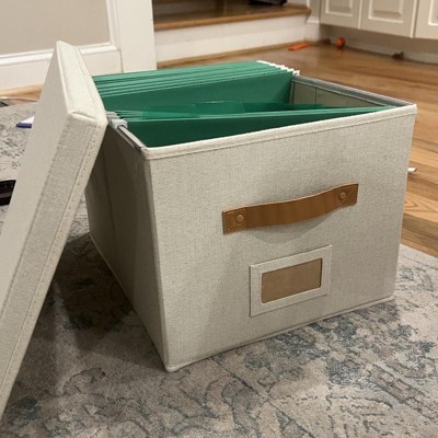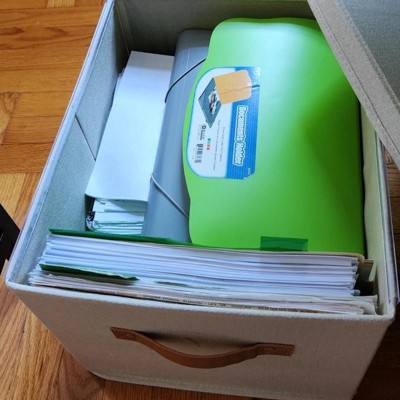 [This review was collected as part of a promotion.] I really like these file storage bins, They have a collapsible design, so they’re very easy to put together. I think the materials and the colors are really nice and neutral but without being boring, and I like the contrast leather-look handles. I’ve been trying to organize our office closet and these are perfect on the shelves for final storage, or realistically, you could use them for storing many other things, they are a great versatile size. as file storage, however I think they should have included some folders, particularly for the price. I received an incentive to write this review.