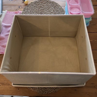 [This review was collected as part of a promotion.] I used these storage boxes to organize my child’s art supplies and puzzles and I am very pleased! The material feels high quality as does the leather handle. It has an adorable pocket on the front to label what is inside. The bins feel sturdy and stylish and not cheap or flimsy. I filled one with very heavy puzzles and it was not sagging under the weight. Will be purchasing more to store all of the kids toys on the shelves. I received an incentive to write this review.