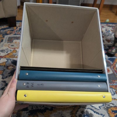 [This review was collected as part of a promotion.] I really like the look of these file boxes. I got them to help organize some binders I had and they fit perfectly. I also like how they are lightweight but durable. I know this because my toddler likes to sit on them and so far they've held up. I love how they include the plastic siding to make files slide easier when stored and that it collapses fairly easy for storage. My only complaint is I'm worried that these will stain easy and I'm not sure how easily they'll clean up. I received an incentive to write this review.