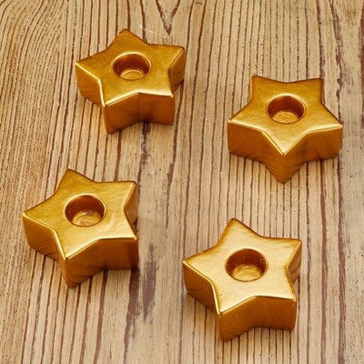 Add rustic charm to your home with this set of four forged-iron taper candle holders with green patina by Kalalou. Crafted in India, each piece features a distinct size, allowing for staggered or linear displays on mantels, buffets, or tables. The heavily distressed green patina gives each holder a unique antique look, perfect for eclectic, rustic, or gothic-inspired décor. Designed to hold one standard taper candle each, they create visual height and layered dimension in any setting. The set includes four pieces, one each size, making it ideal for table centerpieces or scattered decorative accents. Wipe clean with a lint-free, dry cloth to maintain finish.