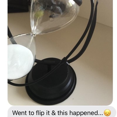 Hourglass was not centered on base and also delivered with the glass cracked! Terrible product, returned immediately.