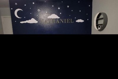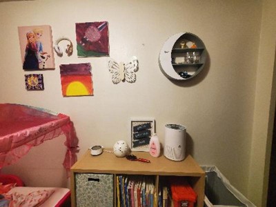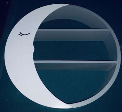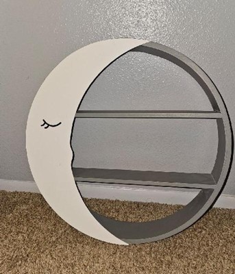 - Features a round design with 2 interior shelves and a sweet crescent moon accent