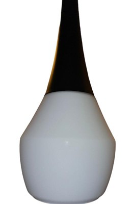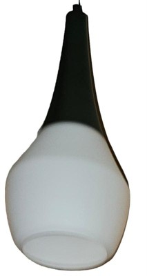 [This review was collected as part of a promotion.] Simple yet modern matte black pendant light. This light fixture is easy to install. It comes with 3 rods but we only used one rod. This is hanging over our small breakfast nook. The glass is frosted. It provides ample light and takes a regular light bulb.