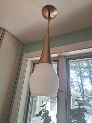 [This review was collected as part of a promotion.] This pendant light is gorgeous. The brushed bronze is so exquisite and modern. The long sleek design brings an elegance to any room. These will look perfect above my kitchen island. The opal glass will give enough light without being too bright. With soft curves and tapered design this pendant will make any room look sleek and modern. Straight out of a design magazine.