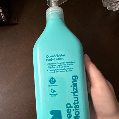Say goodbye to dry skin by adding this 20-Ounce Ocean Water Deep Moisturizing Body Lotion from up&up™ to your skincare routine. Made with a ceramide ingredient complex plus hyaluronic acid, vitamin E and shea butter, this body lotion is formulated to nourish and soften your skin. Dermatologist tested, this lotion features a pleasant ocean water scent and provides 24-hour moisturization.