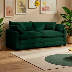 Deep-Seat Corduroy Loveseat with 4 Pillows