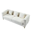 - DURABLE: The sofa is supported by solid wood frame and sturdy gold polished metal legs, this modern three seater living room sofa is strong and durable. Each seat can easily hold up to 250 pounds, making it ideal for three people to relax.