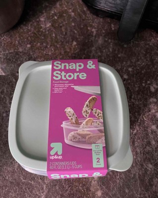 [This review was collected as part of a promotion.] I purchased these snap and close food storage containers from Up and Up. This particular package comes with two deep containers which are 40 ounces. These are great for storing dry or wet food like snacks or leftovers. They hold quite a bit! The lid snaps on easily and is pretty sturdy. They stack well in your pantry or refrigerator. They are microwave and dishwasher safe, but I like to handwash mine. For the price, these are a great value! I received an incentive to write this review.