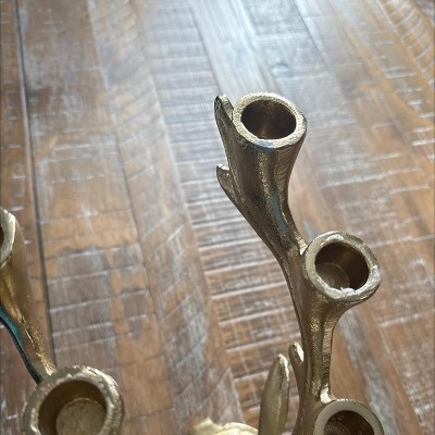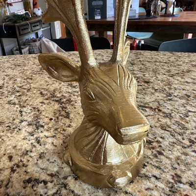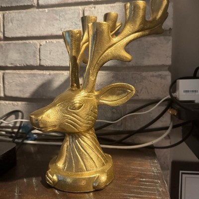 [This review was collected as part of a promotion.] I purchased this deer candleholder online. It’s such a unique and classy piece that instantly elevates my holiday décor. The gold finish looks even better in person — rich, slightly textured, and perfectly festive without being over the top. It feels heavy and well-made, not flimsy like some seasonal décor can be. The piece is actually very heavy! I was surprised of the weight when I pulled it out of the box. The candle holders built into the antlers are a gorgeous detail — I paired mine with glittery white taper candles, and it creates the prettiest glow on my entry table.
