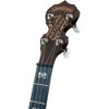 With a Bluegrass resonator back for projection, the Artisan Goodtime Two banjo has a 3-ply violin grade maple rim and produces a bright and clear tone that projects well and is louder than its open back counterpart. The Artisan Two is enhanced with a Rich Brown stain, white detailing and spikes at 7, 9, and 10. The use of spikes enables to expand playing from the key of G to easily play in the keys of A, B and C. Here is a banjo can have right there by easy chair or take out an play in a jam. It holds its own as a bluegrass banjo for anyone looking for a lighterweight option and has the looks to boot. It's great for hours of practice with an accurate neck that is as comfortable as can be. 'll appreciate how light it is when reach over to pick it up and enjoy playing it.