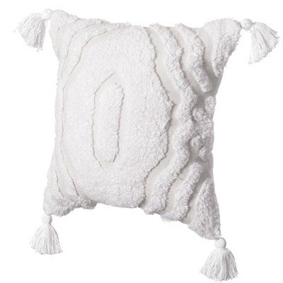 16" Handwoven Cotton Throw Pillow Cover with White on White Tufted Design and Tassel Corners, Insert Included