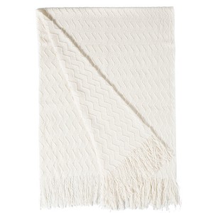 Deerlux Decorative Chevron Pattern Knit Throw Blanket with Chic Fringe Details, Cozy and Sophisticated, Lightweight, Breathable, Easy Care