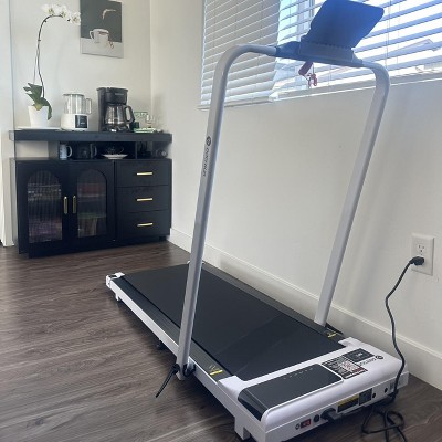 Compact and easy to fold, perfect for home or office use. Runs quietly and feels sturdy for daily walking or light jogging. Setup was simple, and the under-desk feature is great for working while moving. Excellent value for the price.