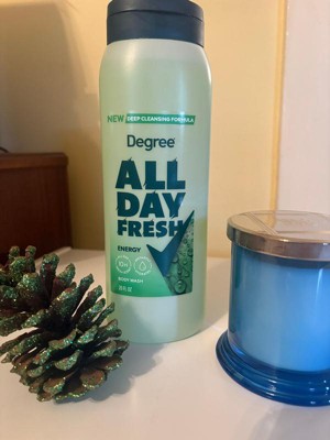 Brought to you by America's #1 deodorant brand is NEW! Degree All Day Fresh Body Wash. Degree body wash was purposefully formulated to complete your freshness routine alongside your favorite Degree deodorant. Degree All Day Fresh body wash features a deeply cleansing, instantly hydrating formula complete with gentle plant-based cleansers to remove dirt, sweat, and grime after a hard day at work or a strenuous workout. Its dewy, herbal Energy scent smells refreshingly clean and is intentionally designed to keep you fresh for up to 10 hours. Degree All Day Fresh will have you leaving the shower feeling fresh, hydrated, and smelling good -- because deodorizing starts in the shower!