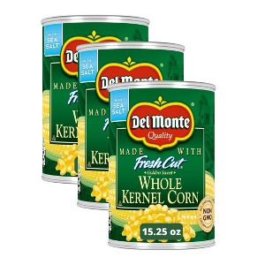 - Three 15.25 oz cans of Del Monte Fresh Cut Whole Kernel Corn