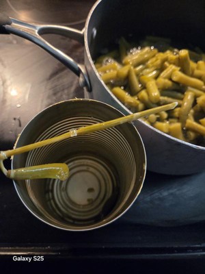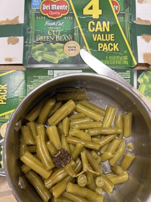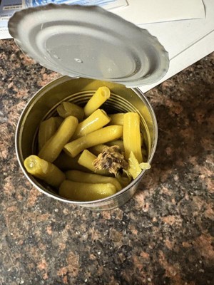 I stopped eating great value because the stem was always in the can and then I started eating nothing but del Monte. Within the past year I've been picking stems out. Instead of 2 cans for my family of 5 I'm having to use about 4 to 5 cans. The vase Green beans are getting smaller and smaller more water than green beans. Today took the cake. There was hardly any and I buy the 4 pack green beans. 3 of the cans were like the picture below.