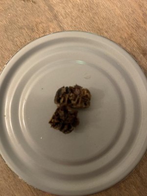 My frenchie gets a can of cut, no salt added green beans a day. I have found stems and brown pieces but what the heck is this??