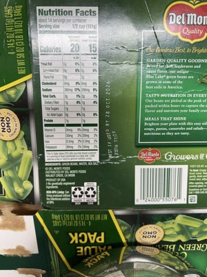 I have been eating Delmonte Green beans for 50 years- feeding my family with 1 can. But opened this can of water with a slash of beans today- there were 12 full beans and some 1/2 beans total and very small. For 3 1/2 recommended servings per can- that’s like 4 beans a person. What a waste in the tin can for all water. Do better Delmonte