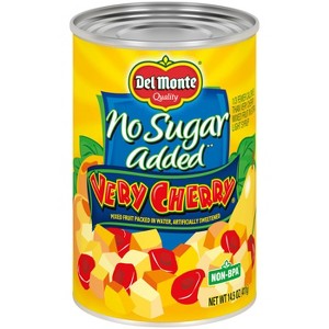 DEL MONTE VERY CHERRY No Sugar Added Mixed Fruit makes it easy to enjoy quality fruit. The fruit cocktail is packed with diced peaches, juicy diced pears and cherries in sweet water.* DEL MONTE VERY CHERRY Mixed Fruit contain no artificial preservatives and no artificial flavors. This fruit is ideal as part of a ready to eat fruit snack or as an addition to fruit punch. *Artificially sweetened. **Packaging produced without the intentional addition of BPA.