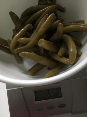 This is the third can I have used that appears to have less than advertised whole green beans so I took the time to weigh these. 5.5 oz in a 14.5 oz can…The whole beans are hard to find, but are as good as fresh picked. I hope this is a quality error.