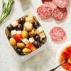 pitted olives (olives, water, salt, lactic acid, acetic acid, ferrous gluconate), mushrooms (mushrooms, water, salt, citric acid, ascorbic acid, lactic acid), provolone cheese (cultured milk, enzymes, salt), canola oil, red peppers (peppers, water, vinegar, salt, calcium chloride), spices, dehydrated garlic.' '