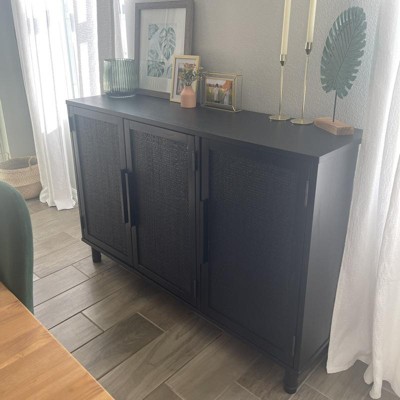 Inspired by Indonesian handicrafts, the Delancey 3 Door Cabinet is a modern update that will enhance any room in your home. The beautiful wood-grain surface paired with natural woven rattan panels provides the perfect balance of materials. This cabinet offers ample storage space as well as a surface for displaying your favorite decorative accessories.