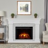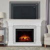 A bold take on a classic style, the Deland grand electric fireplace has a distinguished mantel with a surround designed to look like stone. Add a brilliant focal point to your home and gather around this charming indoor fireplace. Part of the Real Flame® VividFlame™ Grand Series, the extra-large electric firebox mimics the look of a real, flickering fire, but does not require a chimney or vents and conveniently plugs into a standard outlet. This free-standing, oversized indoor fireplace has a mantel with a real wood finish and features six flame colors, five flame brightness levels, adjustable thermostat, timer function and automatic safety shut-off. The electric fireplace insert provides supplemental heat for rooms up to 1,000 sq ft or the heater can be turned off so you can enjoy the comforting ambiance of a glowing fireplace year-round. Mantel, firebox with log set, hardware and remote control are included.