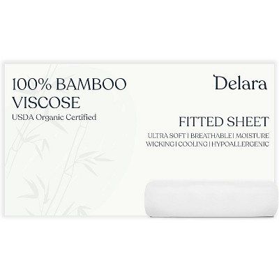 Delara GOTS Certified 100% Organic Cotton Soft, Silky, Moisture-Wicking & Breathable Fitted Sheet, Cal King - White