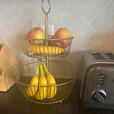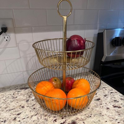Delavan Collection Metal Wire Fruit Basket Gold - Threshold™: Iron Round Fruit Holder Kitchen, 15.75" Height