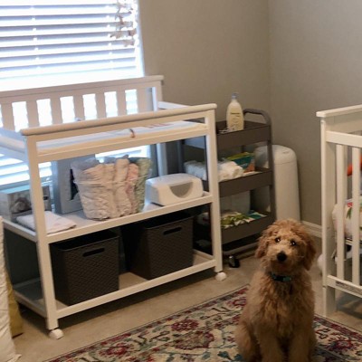 Love my changing table! It goes perfectly with my decor and has so much storage space on the two shelves!