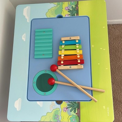 - MUSICAL FUN: Bring out their inner rockstar with the musical instrument activity board | Music board features a xylophone, drum, two drum sticks and noise maker