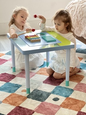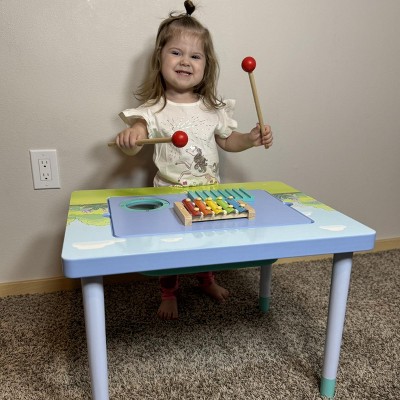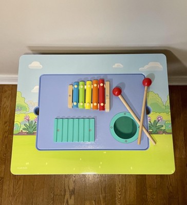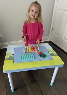 - DOUBLE-SIDED SENSORY TABLE: Double-sided sensory table provides endless ways to play | Choose the musical instrument side or the flat side that can be used as a table where your child can eat, draw, do crafts, finish homework, and more