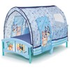 Your little one will be part of the Bluey crew every night with the Bluey Plastic Toddler Bed with Tent by Delta Children. The bed’s attached guardrails, cool tent with mesh windows and colorful graphics of Bluey and Bingo make it the best option for your child's first big-kid bed—it gives them the independence they crave while keeping them safe throughout the night. Get this toddler tent bed today and bring home Bluey fun!