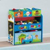 Encourage fun and learning with this CoComelon Design & Store 6 Bin Toy Storage Organizer by Delta Children. A storage essential and colorful sticker station and all in one, this toy organizer is boldly decorated with fun and educational CoComelon graphics and includes reusable vinyl stickers. Kids can rearrange the stickers on the sides of this organizer for hours of endless storytelling, adding a much-needed incentive to clean-up time. The sturdy wooden frame holds six fabric bins sized for every type of toy, so you can store books, blocks, and more. An eye-popping addition to their playroom or bedroom, this toy organizer makes cleaning quick and easy.