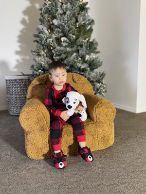 A friendly face makes this Deluxe Cozee Dog Chair by Delta Children a must-have for kids. Little ones will love reading, relaxing, and cuddling in their very own chair, covered in plush faux shearling and embellished with an adorable puppy face. Designed with a kid-friendly handle, your child can easily tote this chair around the house. A delightful addition to playrooms and nurseries, this chair is designed to for serious play, its removable and machine-washable slipcover ensures it will look great for many years. Plus, it’s GREENGUARD Gold certified, which means it passes stringent emission standards. It contributes to cleaner indoor air, creating a healthier space for you and your child.