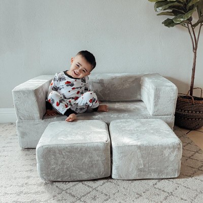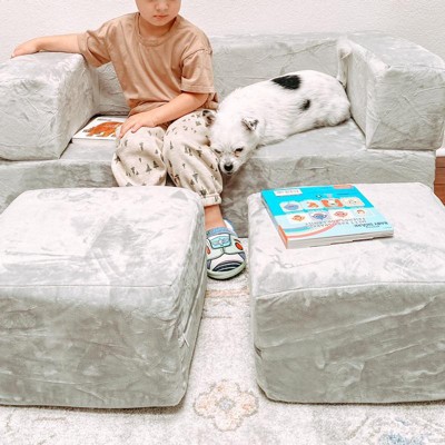 Delta Children Kids' and Toddlers Convertible Sofa and Play Set - Modular Foam Couch and Flip Out Lounger with 2 Ottomans - Gray - 3ct