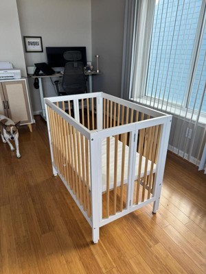 This is such a cute mini-crib. So glad i chose the white/ natural color! It is so pretty! My favorite part is being able to move it around easily! No need to do any lifting at all. You can just roll the crib around. It's also portable because it folds up. You can easily take it anywhere or store it nicely.