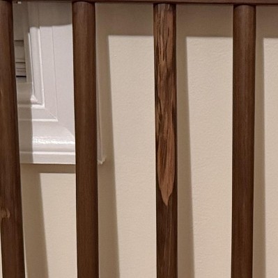 The side of the crib is not stained consistently. I tried to exchange the part, but was denied by the manufacturer. The response from the manufacturer was “The crib side displays a natural characteristic of the product and cannot be change [sic]”