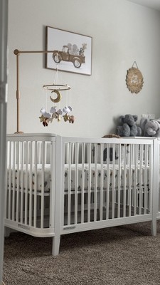 A timeless crib with a modern twist, the Noah 4-in-1 Convertible Crib by Delta Children boasts an organically shaped design with rounded corners, spindles and tapered legs. Crafted to last, it features solid pine construction for support and durability. Plus, it can grow with your little one—simply convert this crib into toddler bed, daybed or sofa when your child is ready (Daybed/Sofa/Toddler Guardrail #W202725 sold separately). With three mattress positions that easily lower as your baby begins to sit, pull up and stand, you can find the height that’s best for them at every stage. Plus, it’s GREENGUARD Gold Certified, which means it’s built to contribute to cleaner air for a healthy home. Crib mattress sold separately.